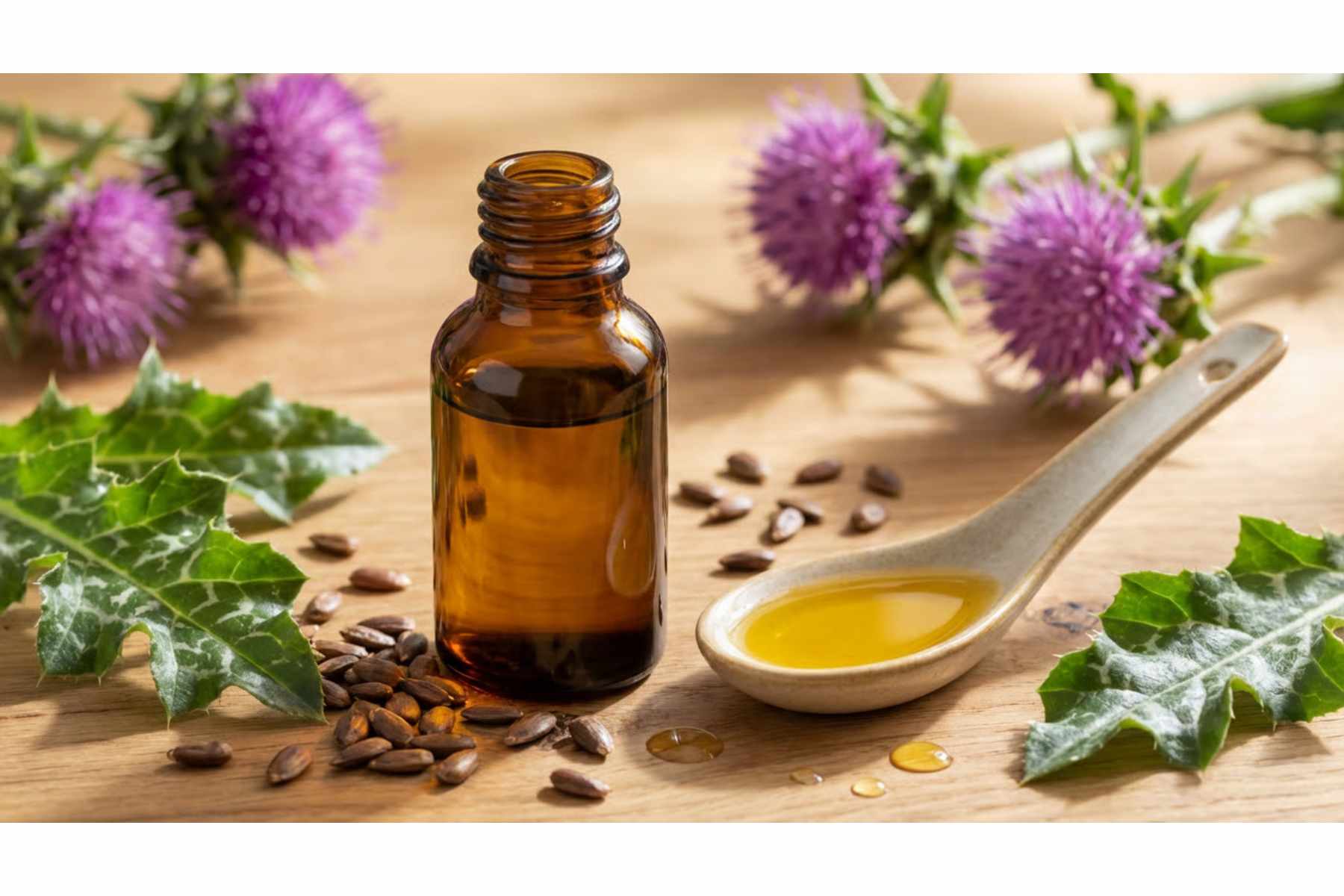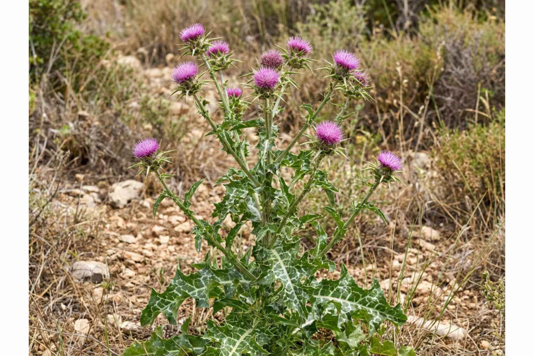 Armurariul (Silybum marianum) este o plantă utilizată tradițional pentru susținerea sănătății ficatului, fiind recunoscută după frunzele verzi cu pete albe și florile sale purpurii.