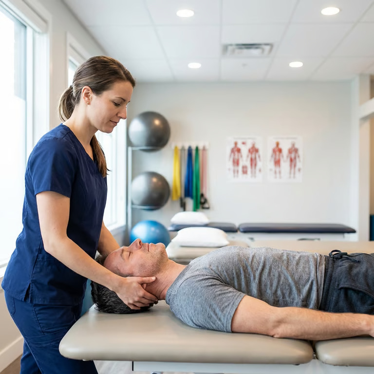 Fizioterapia și kinetoterapia sunt elemente esențiale ale tratamentului conservator, pentru că adresează cauzele mecanice ale durerii. Evaluarea inițială este menită să măsoare mobilitatea, forța, postura și prezența contracturilor ori a punctelor trigger, pe baza cărora se construiește un program de tratament personalizat.